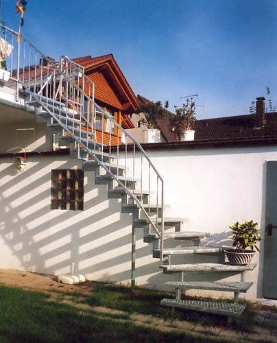 Stufen, Unterkonstruktion sowie Geländer R2-D aus Stahl 37 -