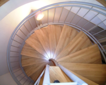 Tragwerktreppe Helix II Stufen Eiche massiv parkettverleimt, kindersicheres Geländer mit senkrechten Geländerstäben