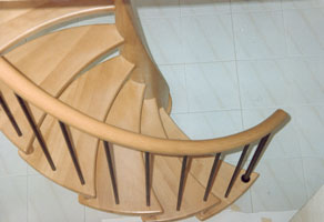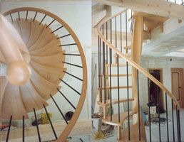 Spindeltreppe mit Massivholzspindelsäule als Krümmling, in