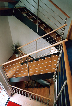 Steiggeländer mit sechs parallelen Edelstahlrundgurten ca. 10 mm