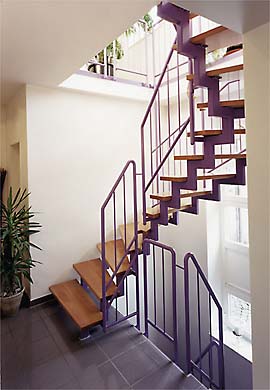 Stahlrohrholmen und aufgesattelten Stufen aus riegelverleimtem
