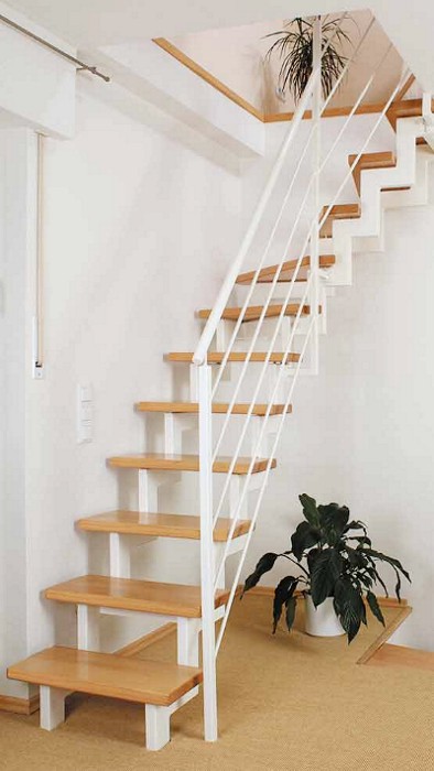 Geländer ist in den Eckpunkten geteilt. Die Stufen werden aus massiver Buche,